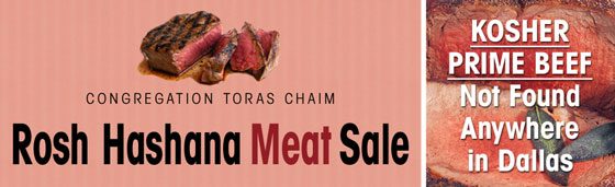 Congregation Toras Chaim is offering, as a service to the Dallas Jewish community quality glatt kosher beef for Rosh Hashana. These larger cuts are being bought at reduced prices with the savings being passed on to our Jewish friends and families.