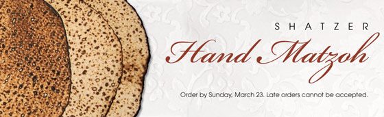 We have arranged the purchase of these Matzos from the Shatzer Matzoh Bakery in Brooklyn.