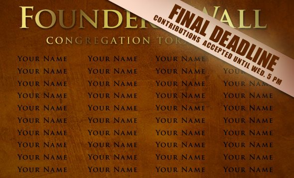 Please consider a contribution to CTC toward the down payment of the building we are buying. Your donation will have an immediate impact the entire Dallas Jewish landscape. And, for any donation received online or in the mail by 5PM Wed. May 8, 2013 your name will be inscribed on our Founders’ Wall in appreciation for helping us reach our goal. There is no minimum contribution required to be listed on the Founder’s Wall, but the more you give the more you help.ÂÂ