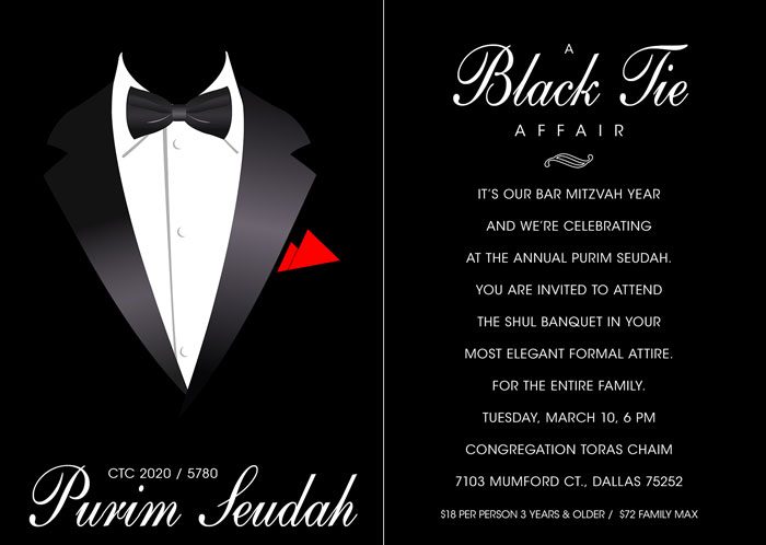 You are invited to attend the shul banquet in your most elegant formal attire.