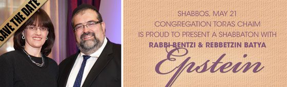 - During Shalosh Seudos: Rabbi Bentzi Epstein will speak for the men in shul, and Rebbetzin Batya Epstein will speak for the women at the Rich home.
