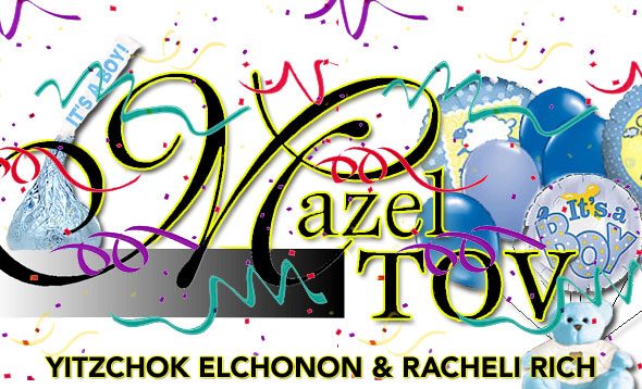 Mazel tov to Yitzchok Elchonon & Racheli Rich on the birth of a boy. Mother and baby are doing well. Mazel tov also to the grandparents, Rabbi Yaakov & Rebbetzin Susan Rich. May the new parents merit to raise their son to a life of Torah, Chuppah (Marriage) and Ma’asim Tovim (Mitzvos).