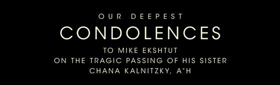 We are sad to inform the congregation about the tragic and sudden passing of Chana Kalnitzky, A”H of Jerusalem, Israel, sister of Congregation Toras Chaim member, Mike Ekshtut.