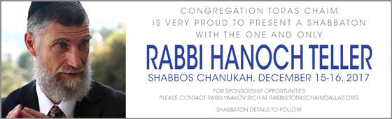 Rabbi Hanoch Teller will be at CTC for Shabbos, December 15-16, and you are invited.