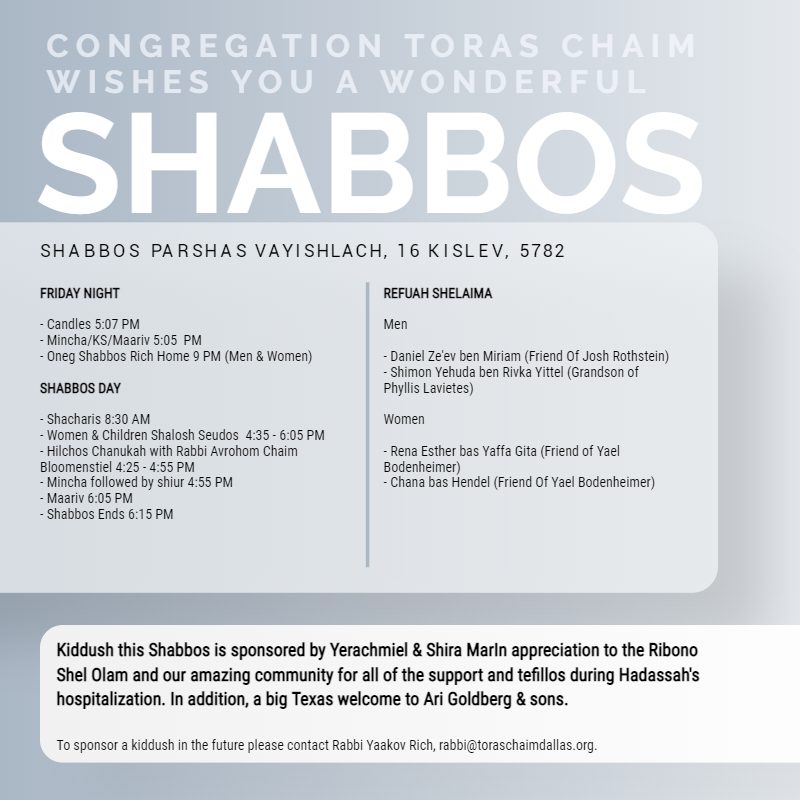 Shabbos Parshas Vayishlach 5782