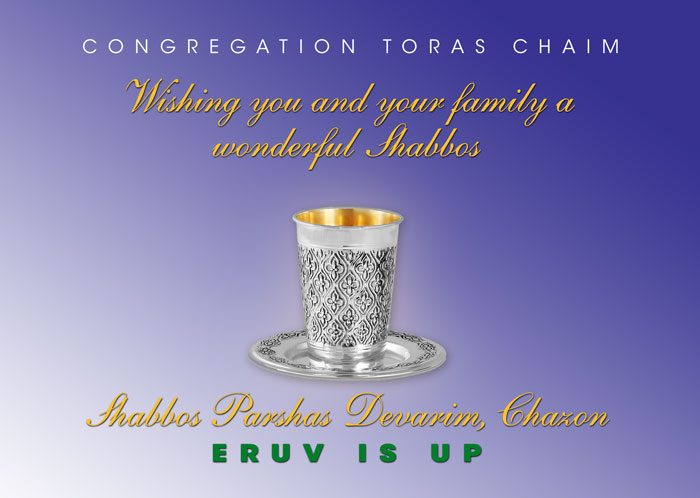 Kiddush this Shabbos is sponsored by the members of the Guarantee Kiddush Club: Pinchas & Tricia Sutkin, Yaakov & Susan Rich, Ben & Lauren Nise, Eli Goldberg, Yerachmiel & Shira Martin, Josh & Lisa Rothstein.