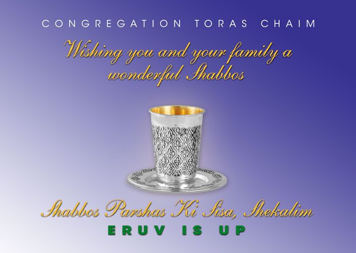 Kiddush this Shabbos is co-sponsored by Rabbi & Rebbetzin Rich in honor of the Aufruf of their son Tzvi Eliezer.