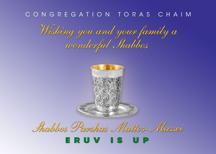 Kiddush this Shabbos is sponsored by Yerachmiel & Shira Martin in appreciation of HaKadosh Boruch Hu for His daily miracles, and His niflaos and tovos at all times – evening, morning, and afternoon.